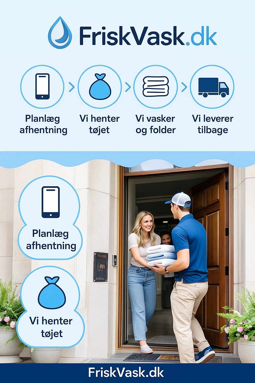 Når du bestiller, vælger du blot det tidspunkt, der passer dig bedst for afhentning af dit tøj. Derefter bliver dit tøj hentet inden for 1 time omkring det valgte tidspunkt.